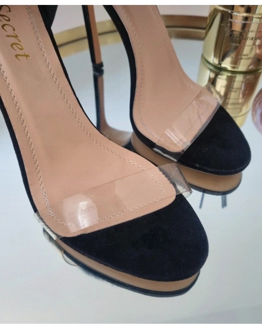 Buty na obcasie czarne z futerkiem Secret 38