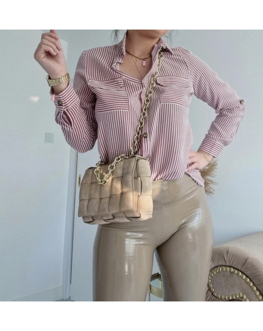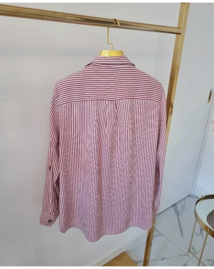 Ta koszula na guziki z kołnierzykiem i paskami jest idealnym wyborem dla kobiet. Paski na koszuli dodają jej eleganckiego charakteru i sprawiają, że wygląda stylowo. Można ją łączyć z różnymi rodzajami spodni lub spódnic, tworząc różnorodne stylizacje. Jest to klasyczny element garderoby, który nigdy nie wychodzi z mody.