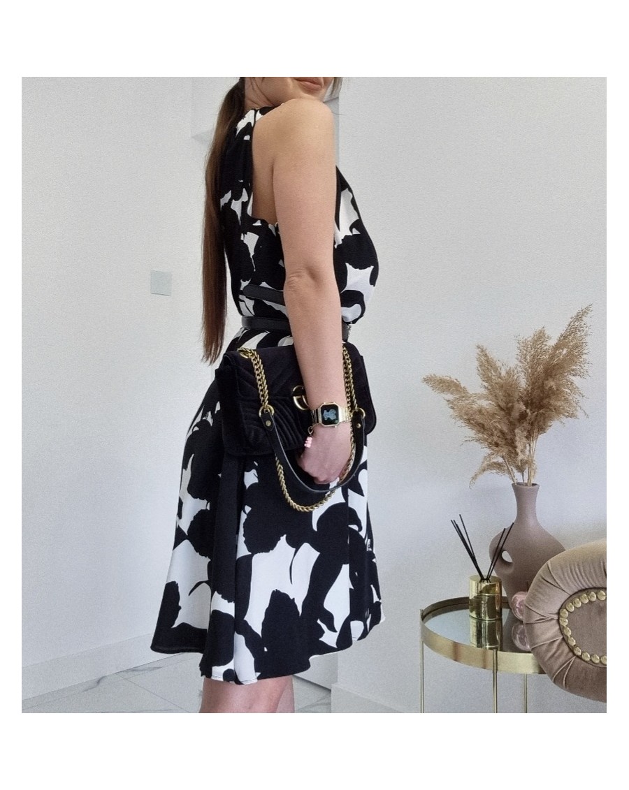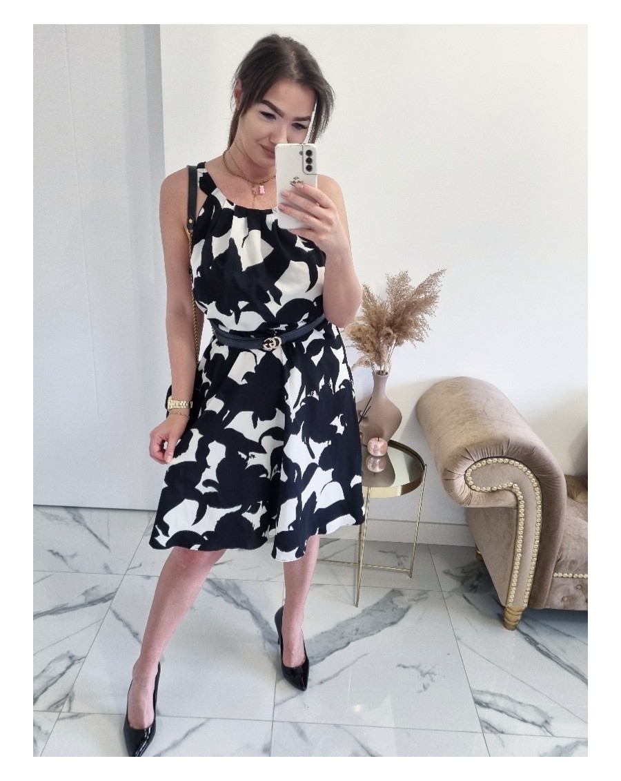 Sukienka posiada klasyczny, elegancki wygląd w czarno-białe wzory. Sukienka jest idealna na specjalne okazje lub na spotkania biznesowe, ponieważ połączenie czerni i bieli jest ponadczasowe i eleganckie. Sukienka jest zapinana z boku na suwak. Sukienka jest wykonana z luźnego i przewiewnego materiału, co oznacza, że jest wygodna w użytkowaniu. Rozkloszowany krój sukienki zapewnia swobodę ruchów i ukrywa mankamenty sylwetki.